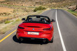 The new Z4 has notably wider tracks than its forebear (98 mm at the front and 57 mm at the rear) and rides on a stiffer platform that is derived from the one that underpins the current 5 Series executive sedan. It also features a new 5-link rear axle and, to reiterate, BMW has managed to achieve a 50:50 weight distribution, as well as a lower centre of gravity with this car. Two optional suspension set-ups are available: M Sport (R5 900) and Adaptive M Suspension (R14 900). Our car had a standard suspension and the latter is probably unnecessary on a vehicle of this power output…