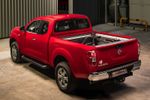 Fitted with a second-generation 5-link rear suspension (unlike the more common leaf spring setup), the Navara double cab's payload has increased by between 54 and 114 kg (depending on the specification) and now totalling 1 115 kg – 1 180 kg. The rear suspension has also been lifted by some 25 mm and a 2-stage coil spring is said to improve the Navara's stance. Nissan has also reworked the front suspension to reduce steering effort, effectively improving low-speed manoeuvrability.