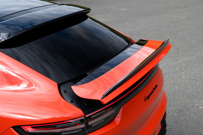 At speeds beyond 90 kph, the coupe version features its own interpretation of the active rear-wing aerodynamics first seen on the long-roof Cayenne, by deploying a 135-mm leading edge spoiler at the shut line of the tailgate, which generates extra downforce for improved stability.