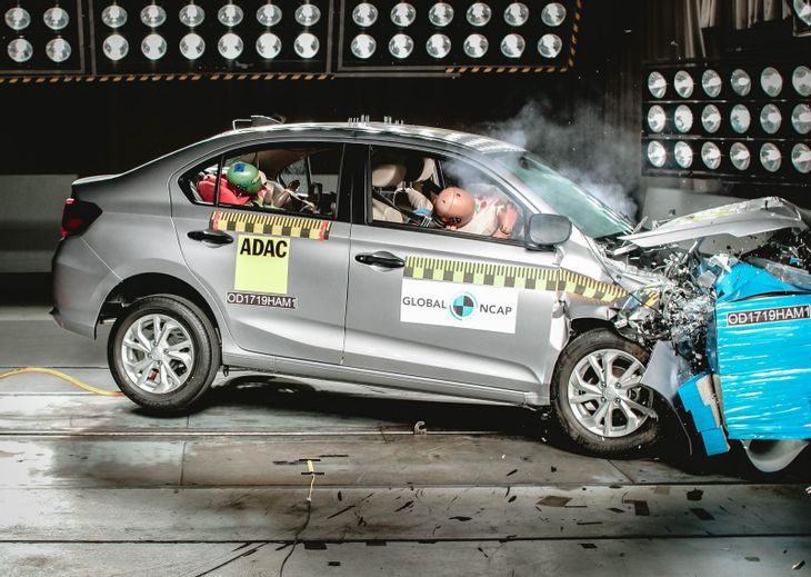 Using the child seats recommended by Honda, the Amaze only achieved a 1-star rating for Child Occupant Protection, because both child dummies impacted the interior of the car during the simulated accident; this demonstrated the likelihood of head exposure and the probability of injury.