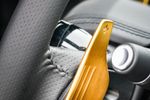 The cabin features 1-piece moulded bucket seats with multi-tone fabric, a combination of black and dark grey dashboard plastics (with a smattering of exterior-colour-coded panels), as well as a leather-trimmed multifunction steering wheel and gear lever.