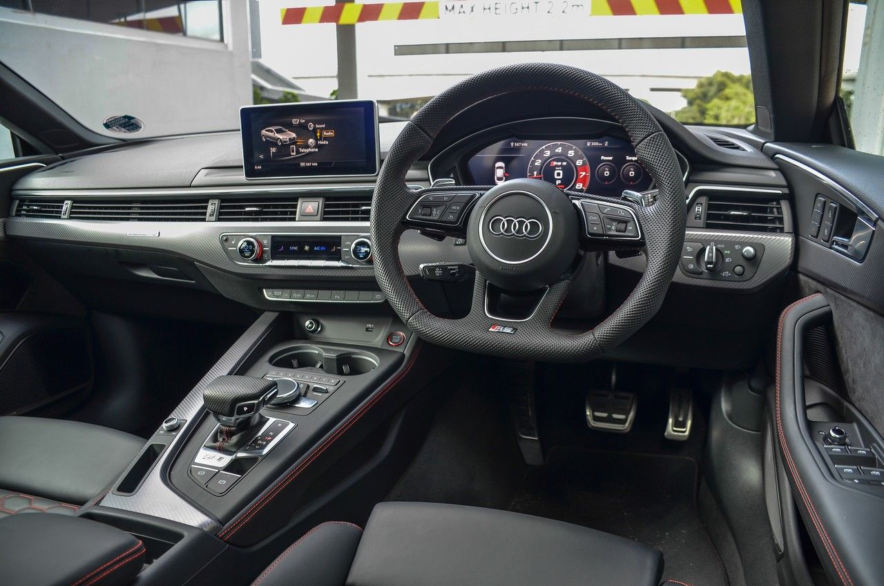 It may not be the latest in Audi infotainment and interior style, but the Audi RS5 Sportback cabin is luxurious and appropriate