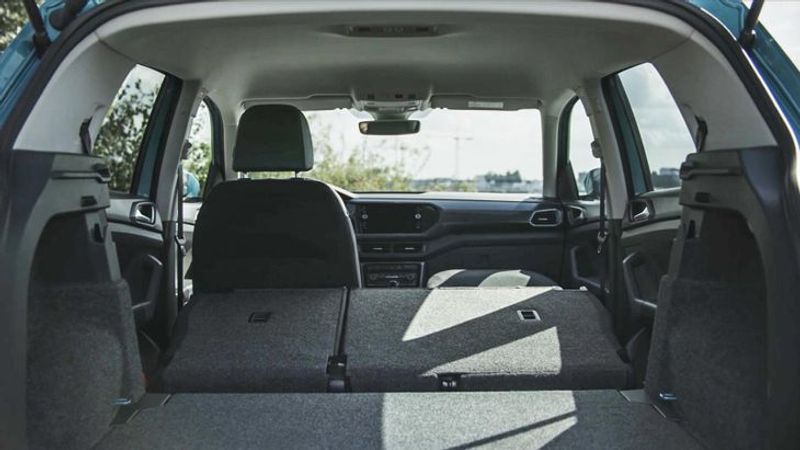 The T-Cross rear seatback folds in a 60/40 split and the load bay offers approximately 100 more litres than the Polo hatchback.