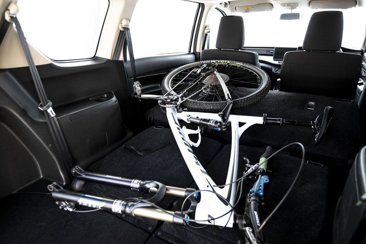 The Ertiga has grown in length by 130mm, lifted the roof by 5mm and the vehicle is now 40mm wider, all of which makes for more space. The second row of seats can fold down 60/40 style and third row in a 50/50 fashion and when both sets are down, up to 2.820 metres of space is available with the front passenger seat also folded flat. Does anyone need to transport curtain rails?
