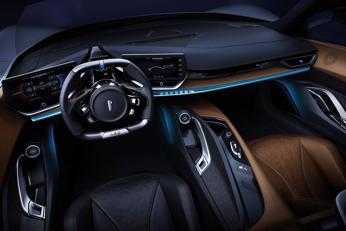 A strikingly styled vehicle, Battista retains the silhouette of a typical mid-engined hypercar, despite being driven by a T-shaped 120kWh battery pack, which is the work of Croatian electric vehicle specialist, Rimac.
