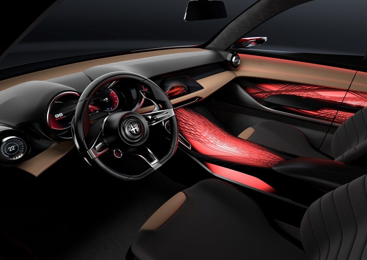 It’s a more compact version of the Stelvio and draws its inspiration from Alfa's past cars. For example, the phone dial design of the 21-inch wheels is inspired by the iconic 33 Stradale of the '60s while the bodywork is reminiscent of the Duetto and Disco Volante Spider. The front end features Alfa Romeo's signature "Trilobo" and "Scudetto" grille which is complemented with "3 plus 3" forward lighting similar to that of the SZ and Breza.
