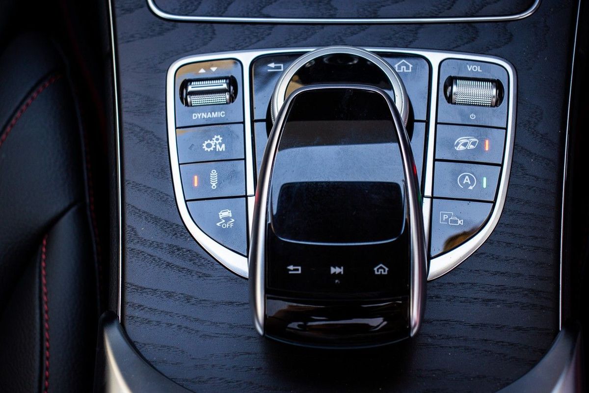The facelifted C-Class has received a major interior makeover and is all the better for it. The updates to the fascia and infotainment screen are comprehensive. Our test car featured a matte black wooden finish, which seems a big step up in look and tactile feel compared with the standard gloss black plastic. The infotainment user experience has been cleaned up and simplified too; it now feels like a tablet, with upmarket graphics.