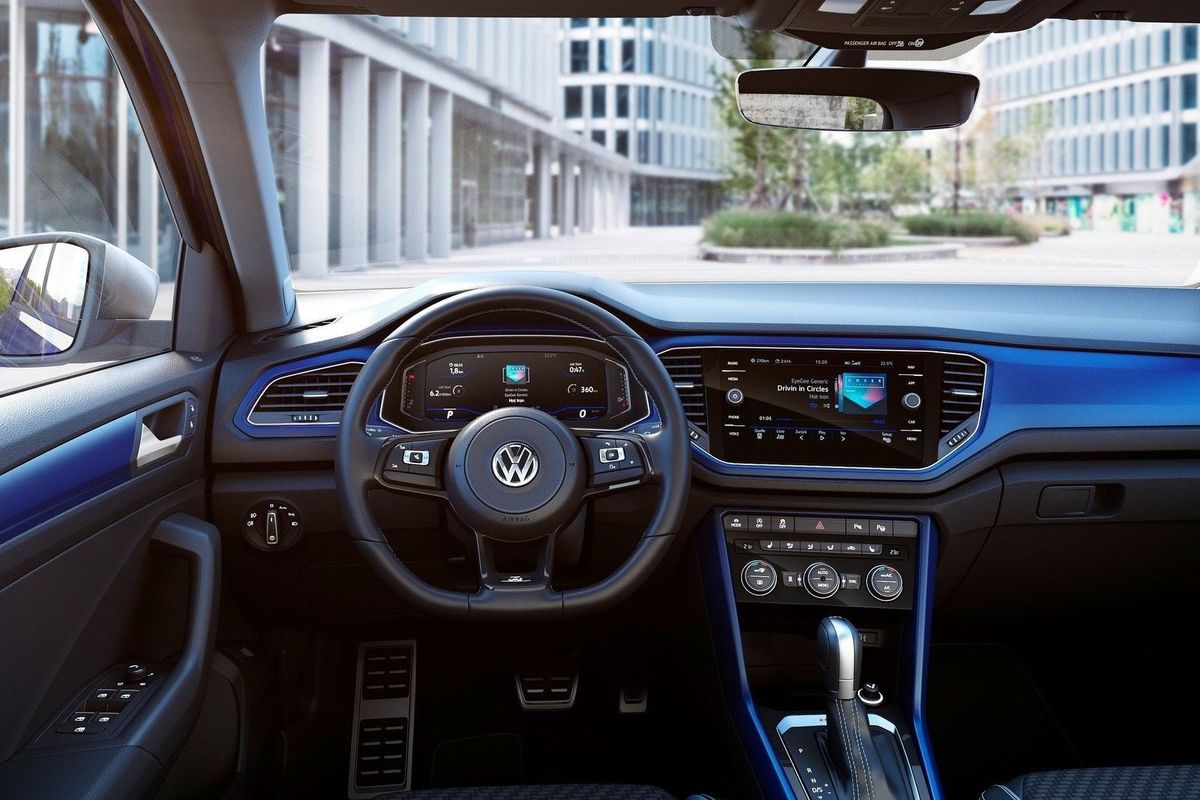 The cabin of the Volkswagen T-Roc R has a sporty theme and is well appointed.