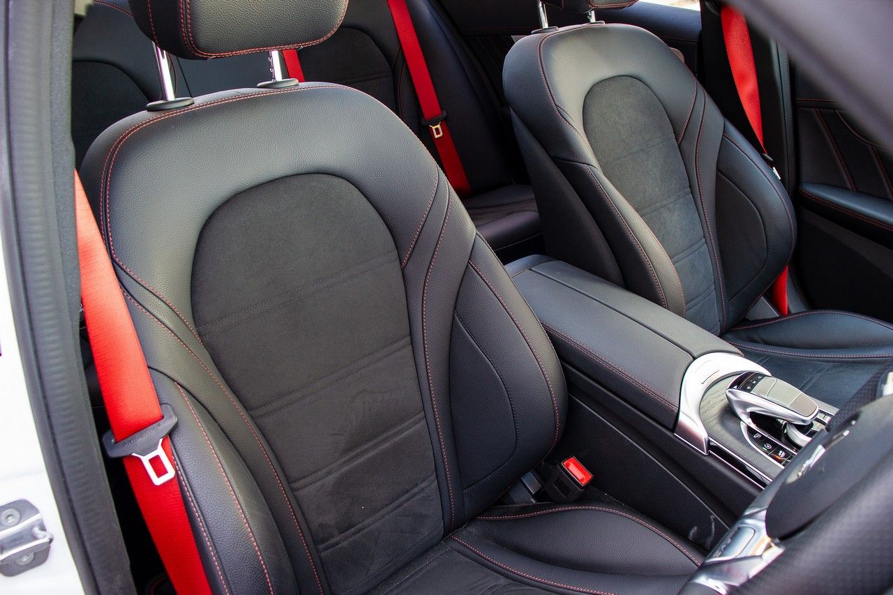 The AMG sport seats are comfortable and the red seatbelts/stitching are a reminder that you're in the baby AMG