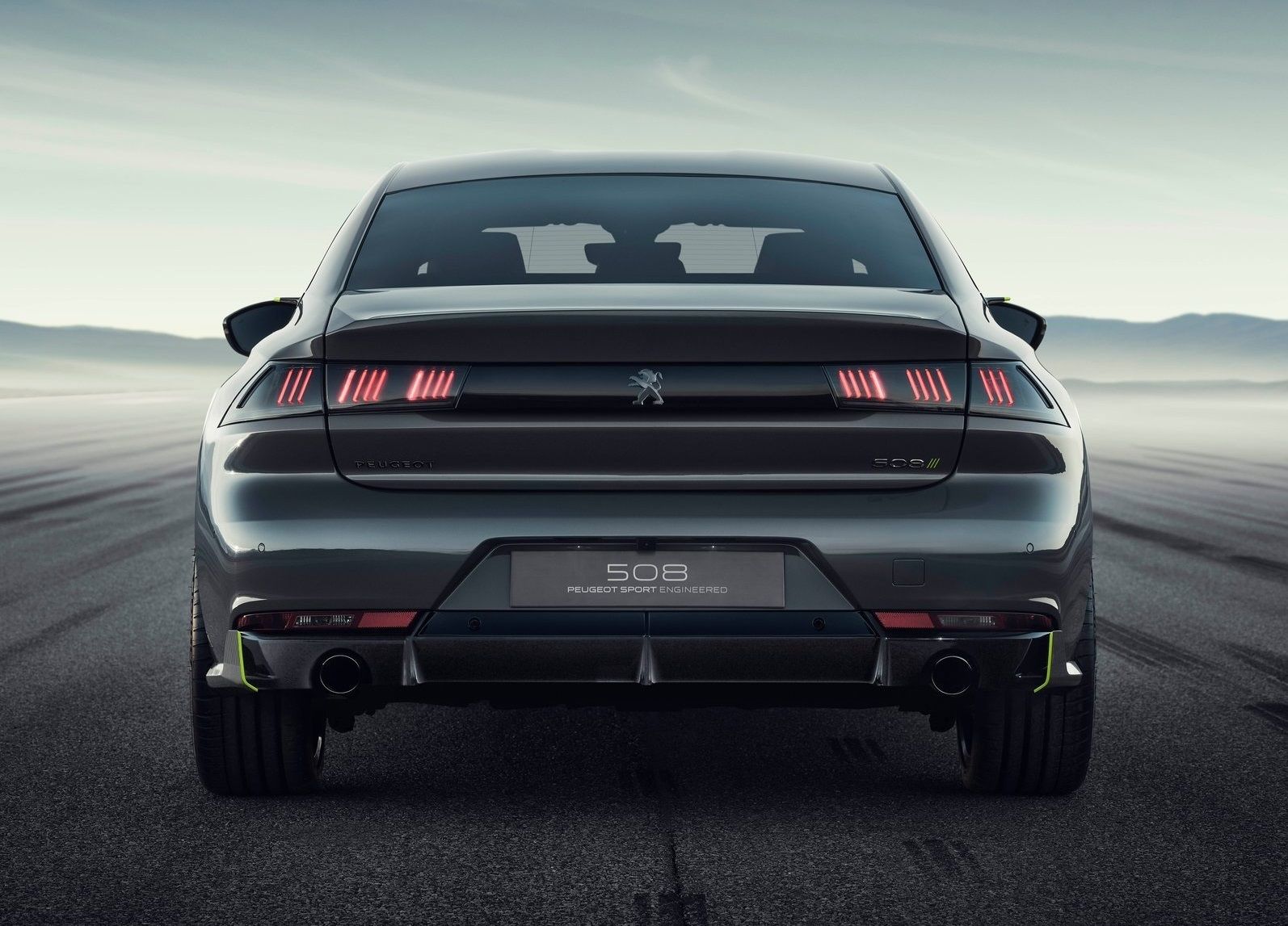 Rolling 20-inch alloy wheels, this Sport Engineered 508 is a decidedly French interpretation of what the four-door compact performance car should be – hence the absence of a gratuitous rear spoiler, which Peugeot’s stylists consider ruinous to any road car’s purity of shape. That doesn’t mean that the aft section of his 508 Sport Engineered doesn’t feature clever aero: it has a fully functional diffuser framing the rear bumper.