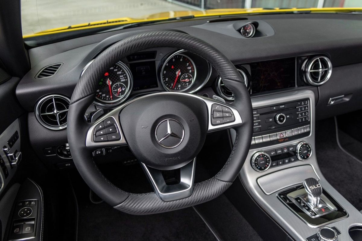 Paying homage to the memory of those original SLKs, the SLC Final Edition features a vivid yellow paint option – which was also the signature colour when SLK debuted back in 1996. It’s called sun yellow and looks particularly fetching on third-generation SLC, contrasting with a black grille, air-intake and door handles.