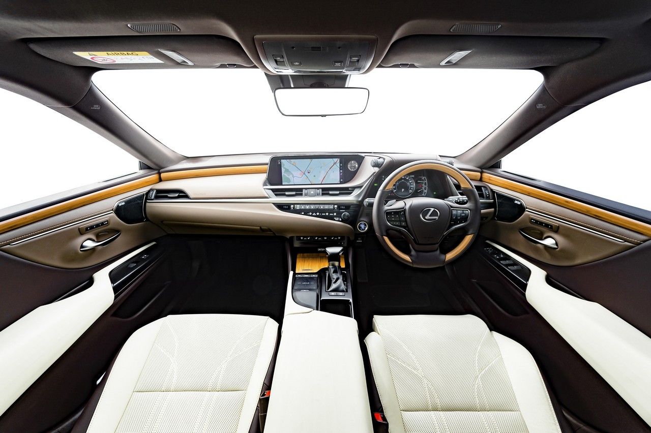 Tasteful natural wood inserts frame the sumptuous interior of the ES 300h. There is no lack of electronic gizmos or -adjustment.