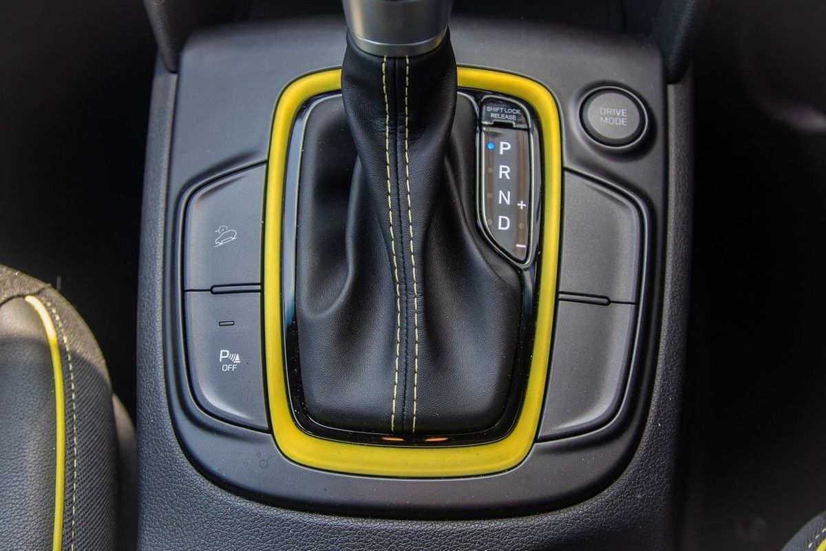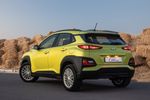 The multifunction steering wheel controls the audio system, telephony and cruise control/speed limiter; rear park distance control, a reverse-view camera, electric windows, auto lights, USB/Aux inputs, and a whole host of safety features are fitted; there are 6 airbags, ABS, EBD, Brake Assist and, as a bonus: a tyre pressure monitoring system. The Kona has hill descent control, activated by a button to the left of the transmission lever.