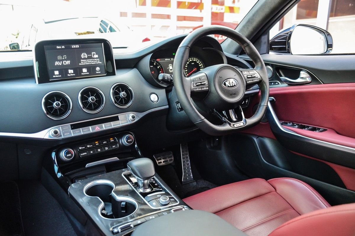 The Stinger cost R849 995 when new, including a 5-year/100 000 km maintenance plan and a 5-year/unlimited-kilometre mechanical warranty. Standard features include: bi-functional LED headlamps with dynamic bending, electrically-adjustable front seats (with memory and lumbar support for driver) and steering column, head-up display, a 15-speaker Harman/Kardon Premium audio system, touchscreen infotainment with Apple CarPlay, Android Auto and navigation, 3-zone aircon, heated seats (all round), surround-view monitoring system (including reverse-view), park distance control (front & rear), electrically powered tailgate and heated and auto-folding side mirrors with integrated indicator lenses.