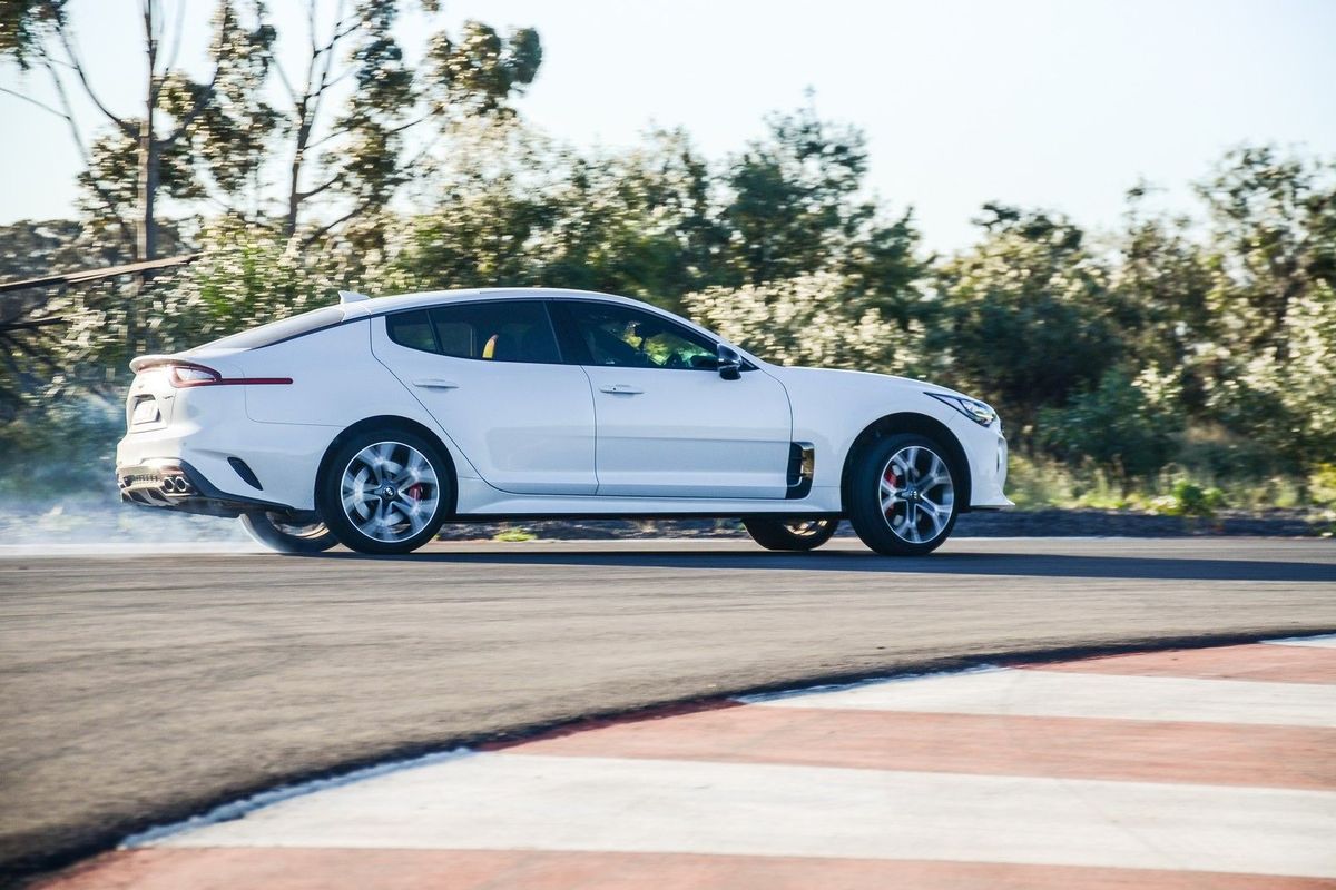 The Stinger's electronic stability control is calibrated to allow for some "tail-wagging". When you switch it off, this might ensue…