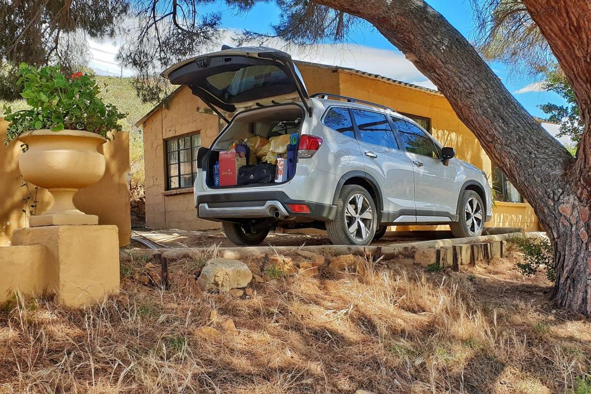 A fully-loaded Forester. The newcomer now has a faster-operating electric tailgate.