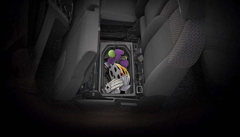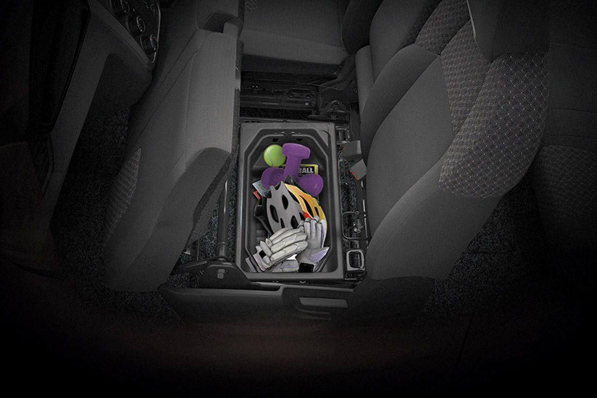 Additional storage space is afforded under the front passenger seat, which is conveniently hidden from prying eyes.