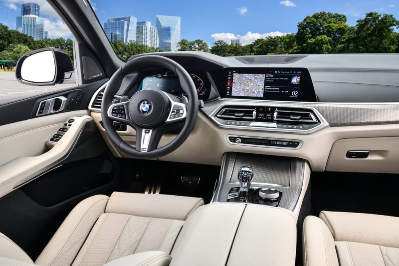 The X5's large kidney grille and BMW's Laserlight adaptive headlights give it a powerful frontal aspect.