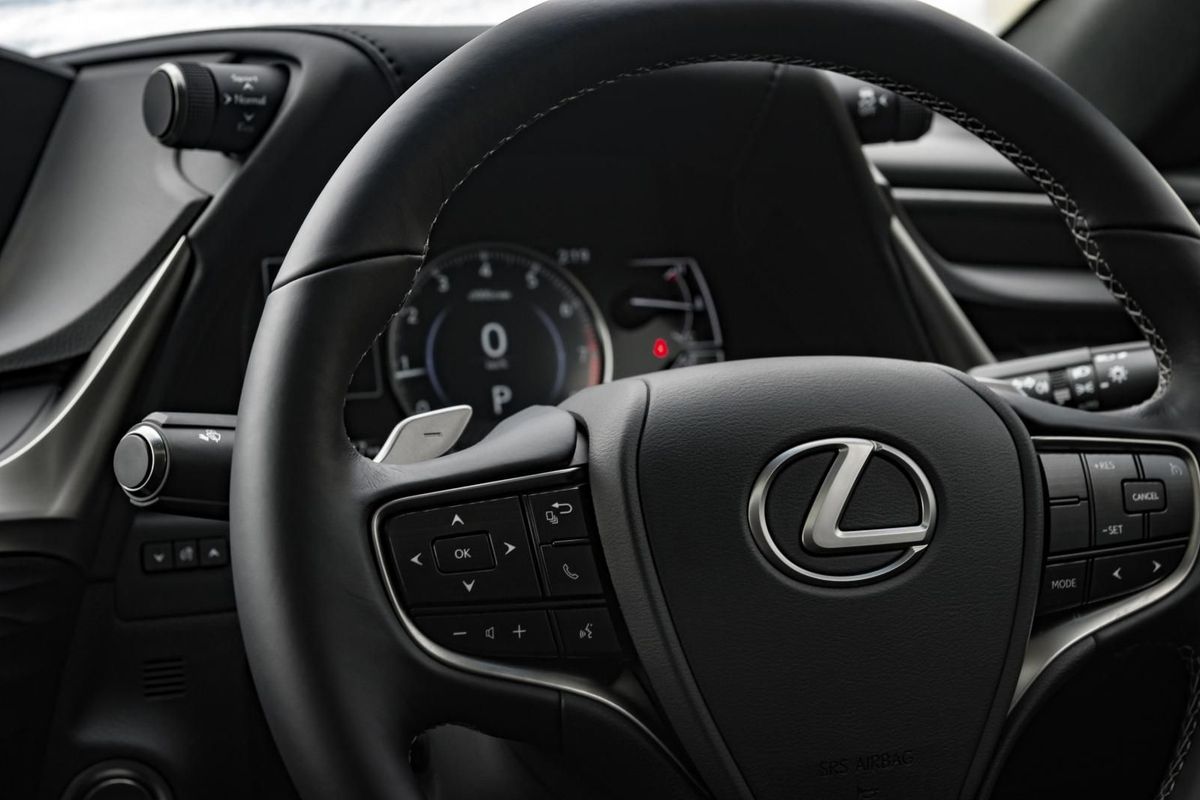 Note the digital dashboard behind this steering wheel, which comes straight from the flagship Lexus LS limousine