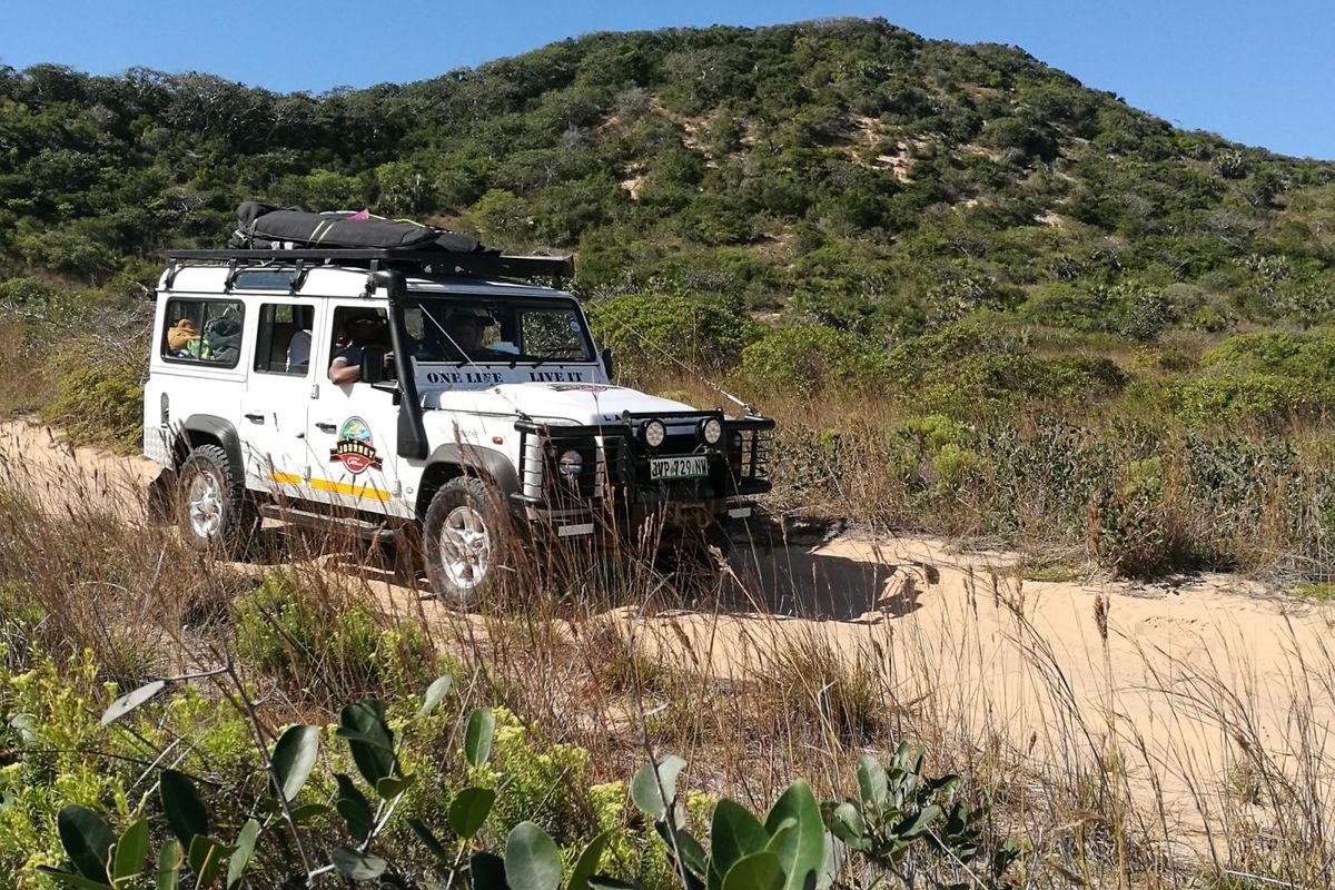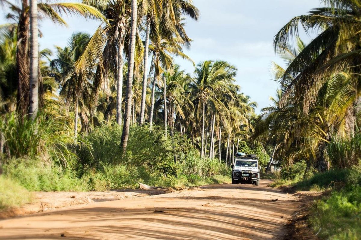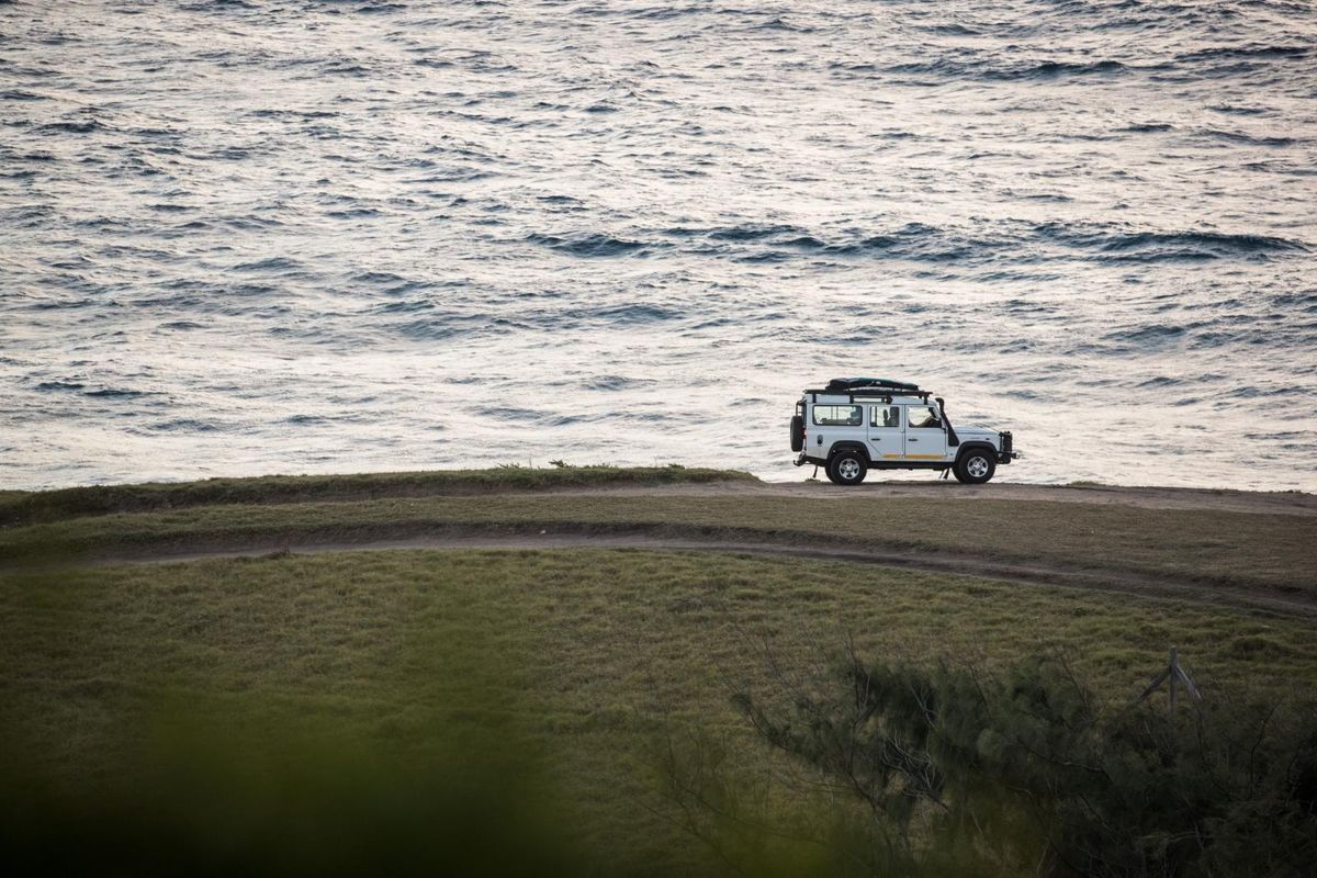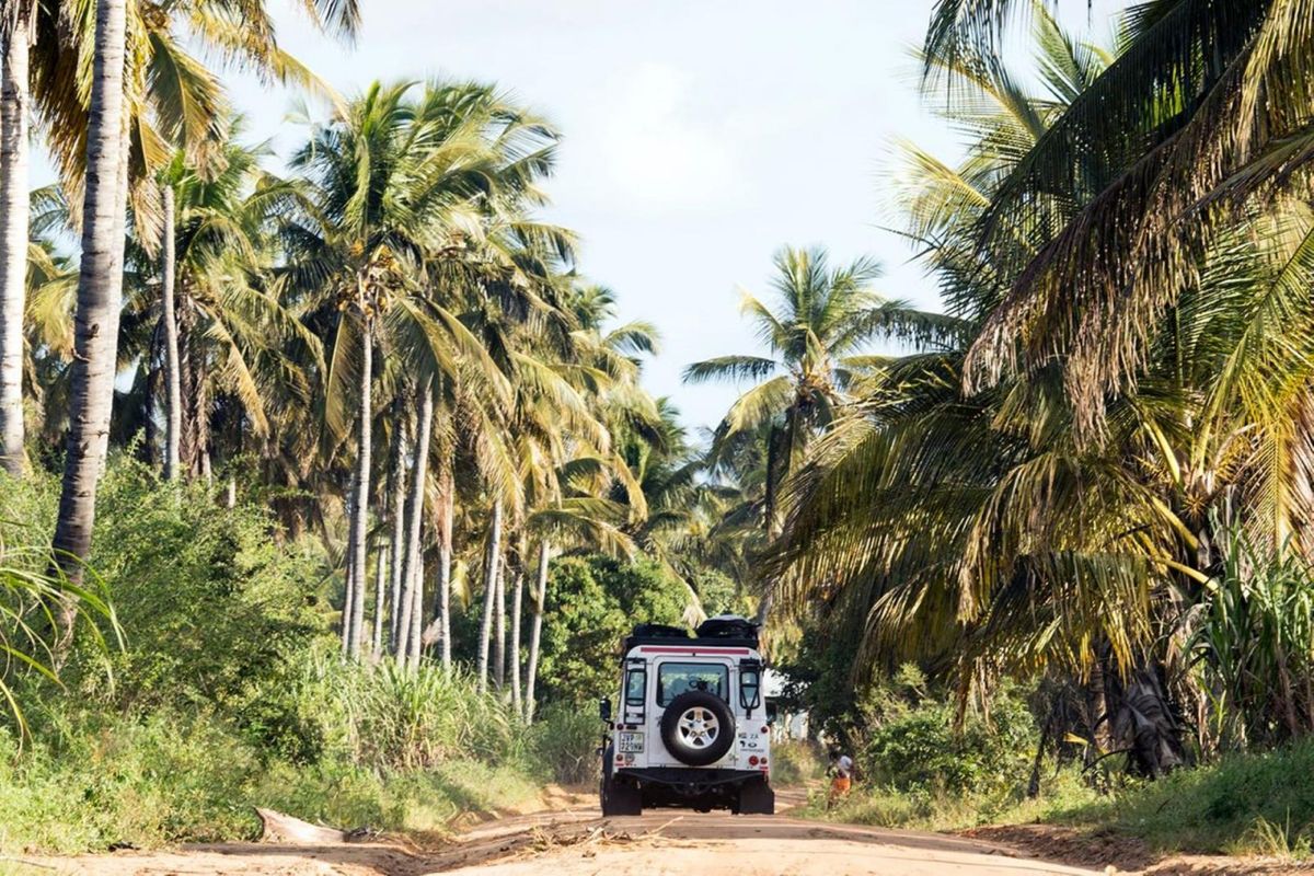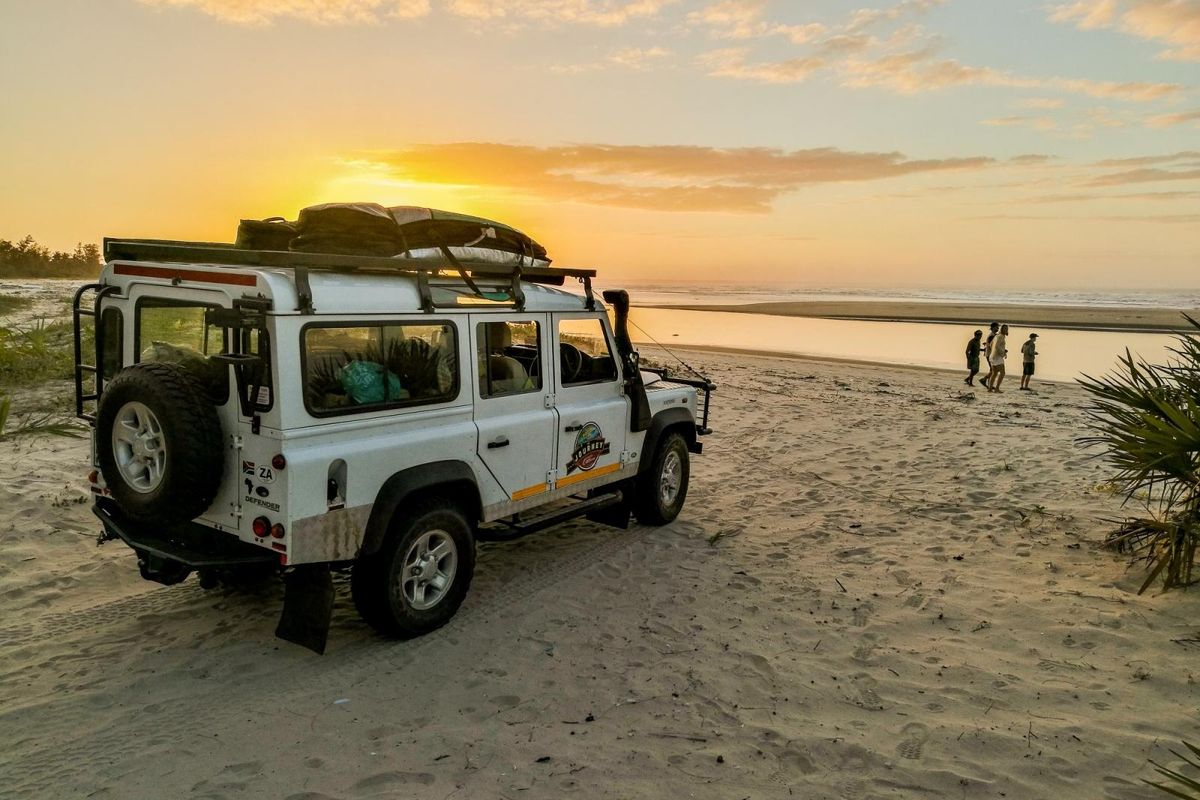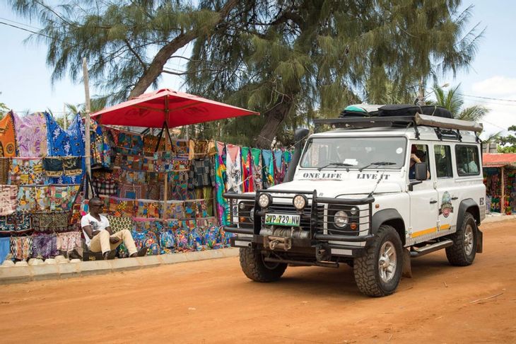 The iconic Land Rover Defender blends in perfectly with the Mozambican landscape. Photo: Troy Davies