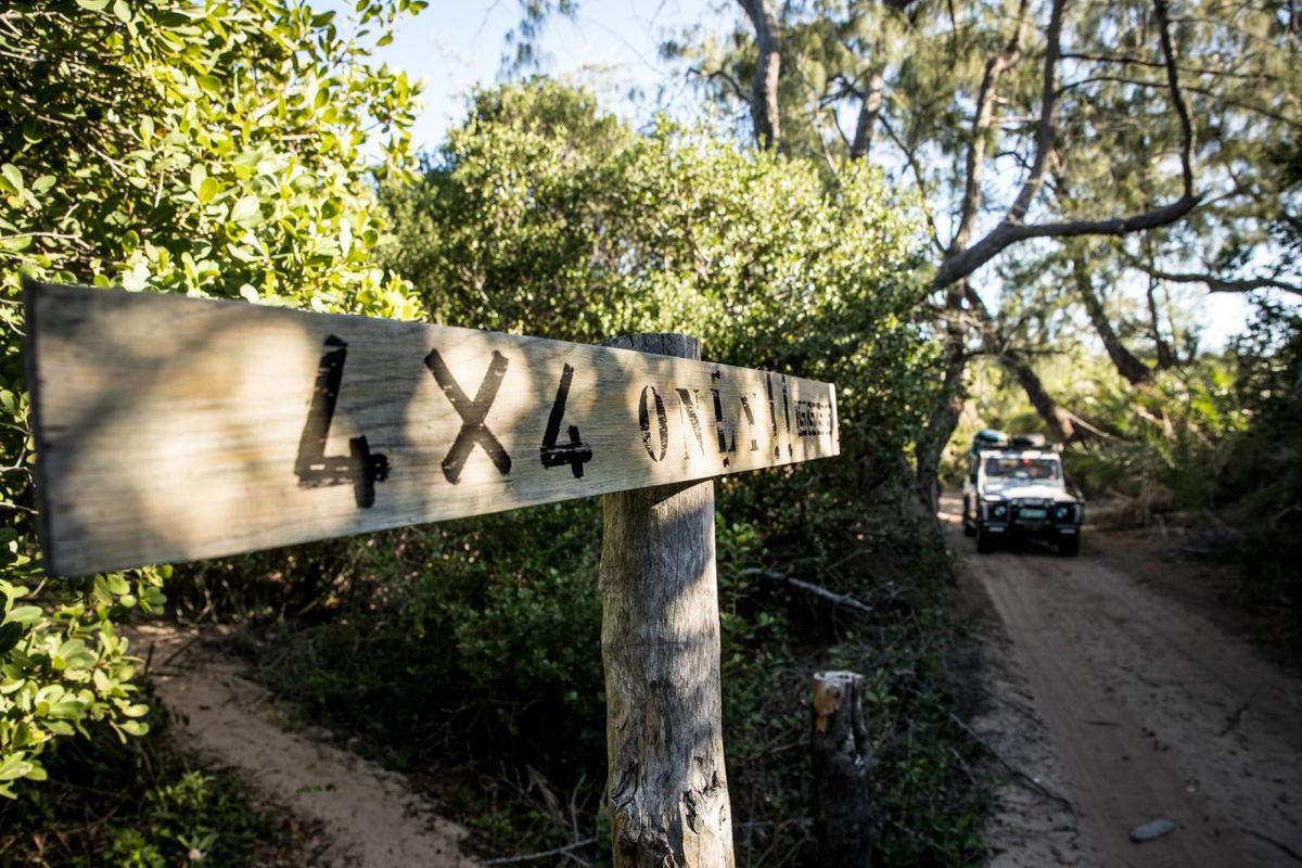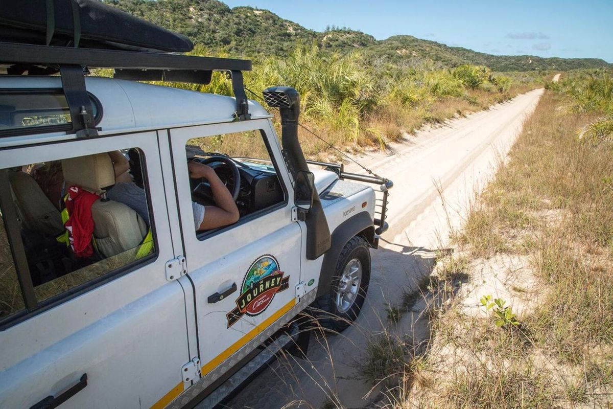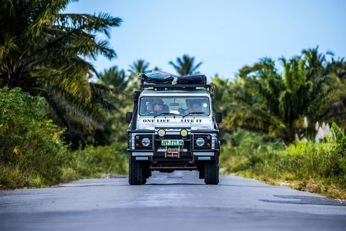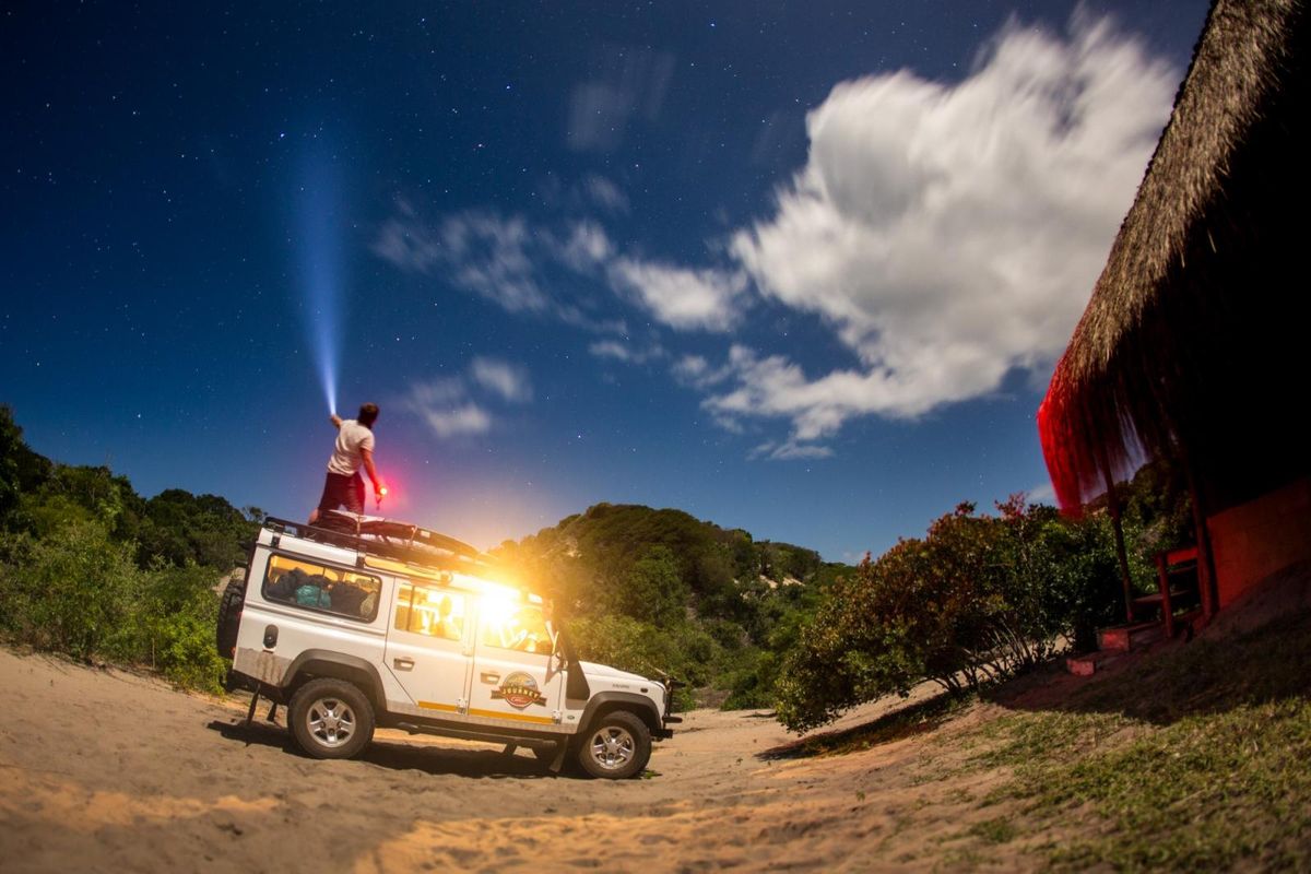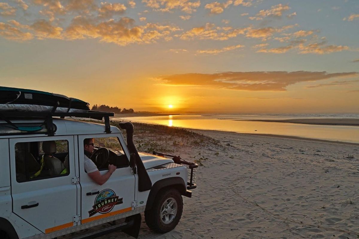 The iconic Land Rover Defender blends in perfectly with the Mozambican landscape. Photo: Troy Davies