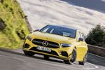 In terms of driving dynamics, the A35 is equipped with 4Matic all-wheel drive, capable of making it up to 100% front-wheel-drive or a 50/50 split. Aside from the raucous power upgrade, the major focus on the A35 appears to be the beefed-up brakes. The front axle is fitted with new 4-piston Monoblock fixed callipers and 350-millimetre brake discs, the rear axle with 1-piston sliding callipers and 330-millimetre brake discs. The discs are internally ventilated and perforated to better dissipate heat and prevent brake fading, even with extreme use. The silver-painted brake callipers have black AMG lettering.