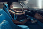 With the e-Legend's steering wheel neatly tucked away when the concept is running in autonomous mode, the driver can use the sun visor as an entertainment screen.