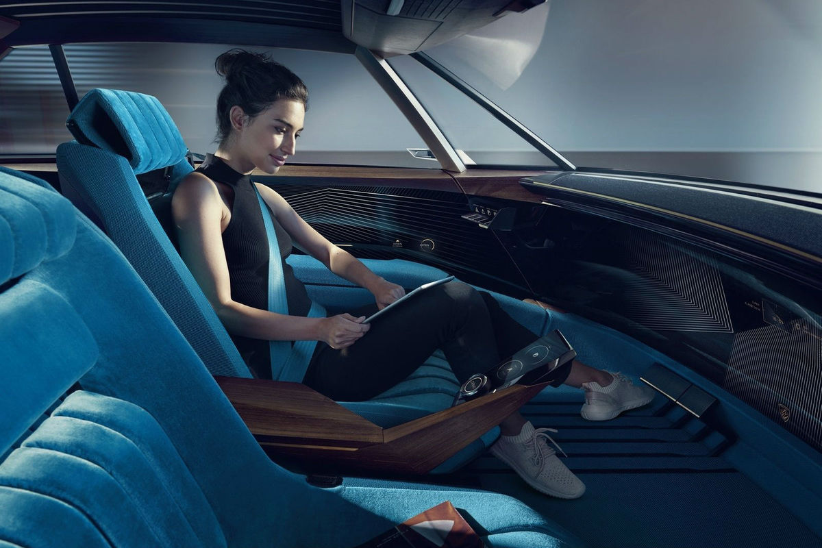 “The occupants can then enjoy their favourite hobbies: play the integrated video game or watch a film either in the curved central screen or in each screen built into the sun visors,” Peugeot claims.