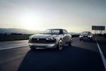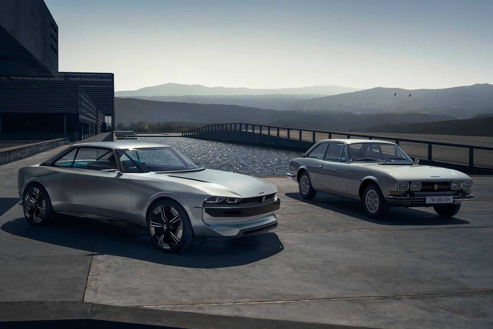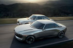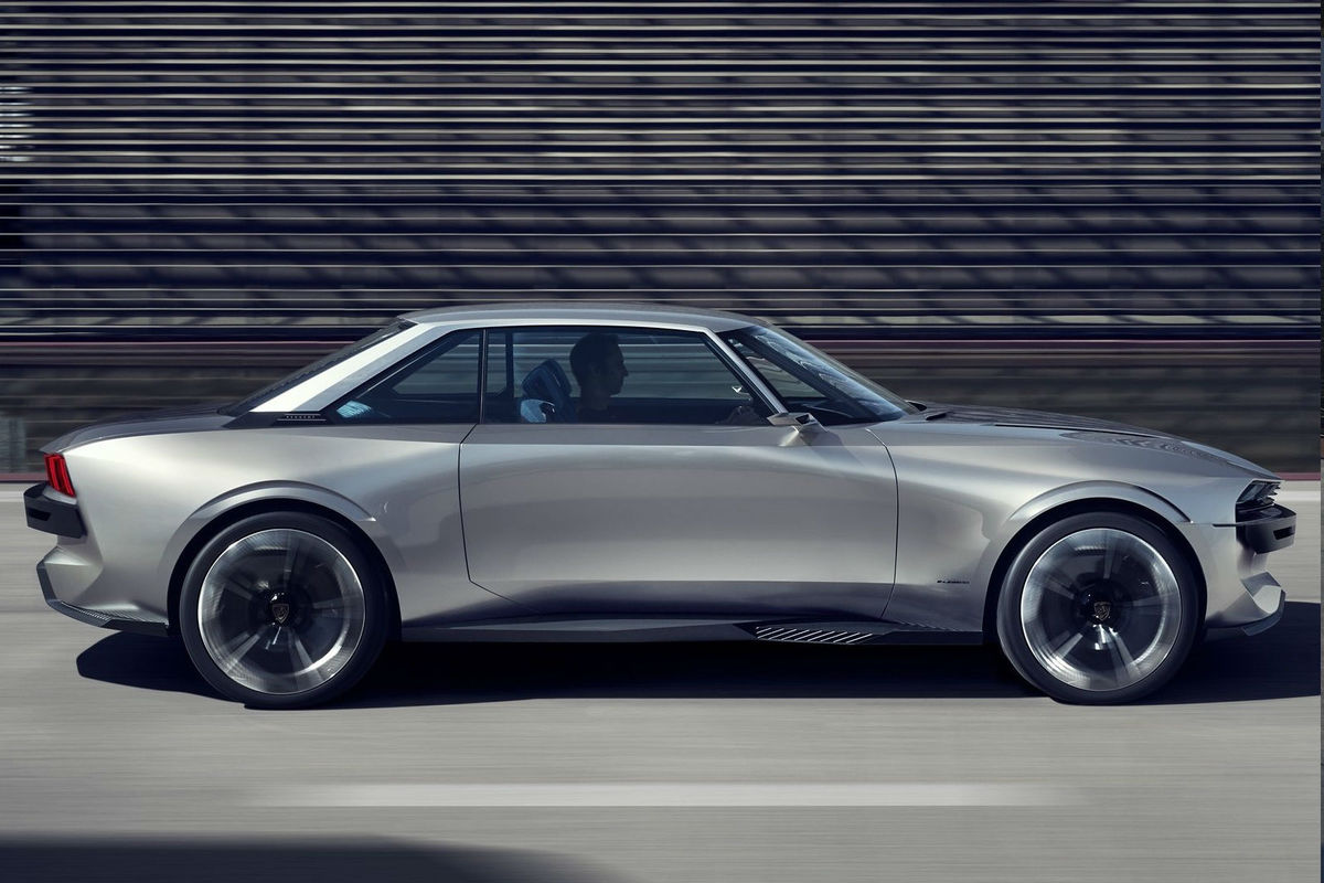 Although the 504 Coupe (right), which inspired the e-Legend, exudes late-'60s Italian elegance, the latter is decidedly more muscular.