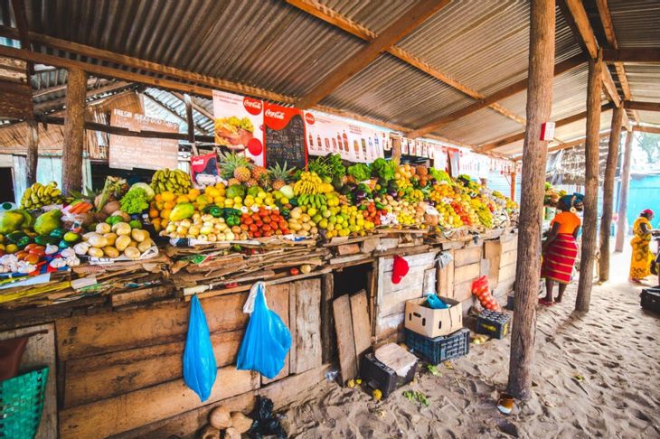 The market in Tofinho is vibrant with a wide variety of food and goods on sale. Photo: Nicole Eddy