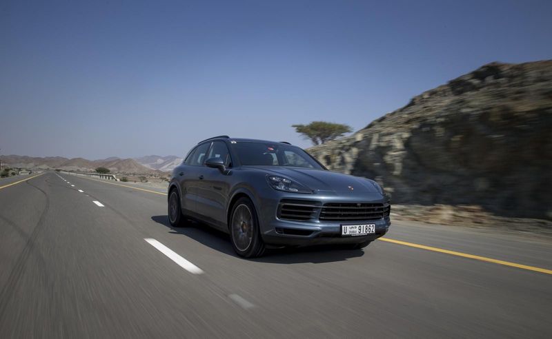 Yes, the Cayenne can be committed to demanding bends with confidence as if the laws of physics are mere regulatory guidelines and its four wheels transfer the powertrain’s might to the asphalt with a clinical efficiency that begs the question: “Do these tyres never squeal?” The test route in Dubai and Oman did not incorporate much in the way of high-speed handling tests, but as much as the Porsche DNA is evident in the Cayenne’s handling characteristics, the newcomer’s steering action is quick and razor-sharp without ever feeling frivolous; indeed, Alfa Romeo's Stelvio does not hold exclusive rights to a darty tiller… The lack of artificial heft is refreshing.