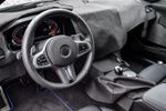 The cabin has seen some surprisingly big changes, however. Again, we’re only seeing small details here, as most of the interior of the test car was covered with thick felt fabric to keep unauthorised eyes away, but there are definitely new all-digital instruments. These now push the main dials for speed and engine rpm out to the edges of the display, leaving the centre of the screen free for navigation and trip computer details, and they have a design that seems retro… a little bit ‘80s, actually.