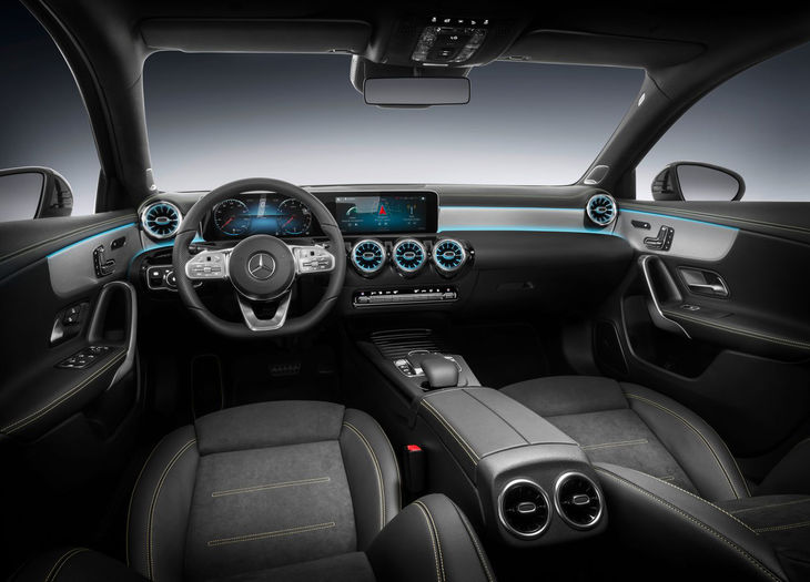 Mercedes-Benz has been getting its interior designs spot on for the last few years. The longevity of the materials has come into question but they do look particularly good. The facelifted A-Class benefits from the huge skateboard screen that we first saw on the E-Class a few years back. The inclusion of LED lighting around the air vents and dashboard gives it a futuristic ‘TRON’ feel to it. The steering wheel is also a key upgrade metallic buttons replacing the plastic ones of the current generation. Overall, for what is its entry-level model, the A-Class has a very stylish and premium looking cabin.