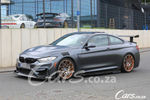 These images show an M4 GTS with larger front air intakes and an even higher and bigger rear wing. There also appears to be a bootlid spoiler as well, likely further improving the downforce of the new model. The front also features canards or dive planes on the side adding to front-end downforce. There's also downforce aids along the side skirts and a proper, race car spec rear diffuser.