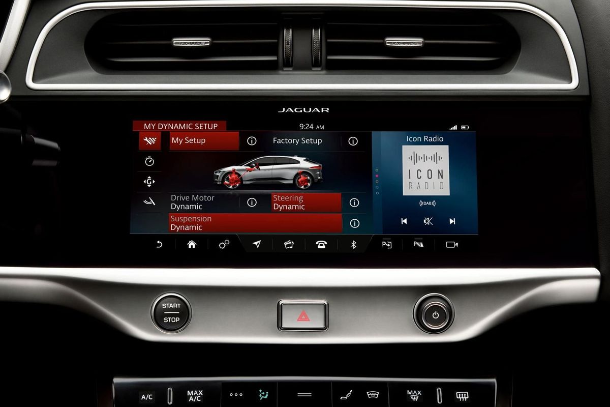 The interior is original to the I-Pace featuring displays that help to get the most out of your electric range.