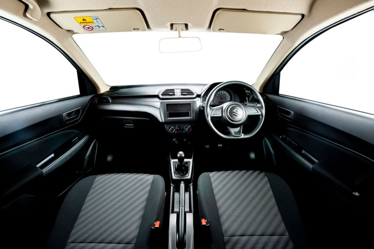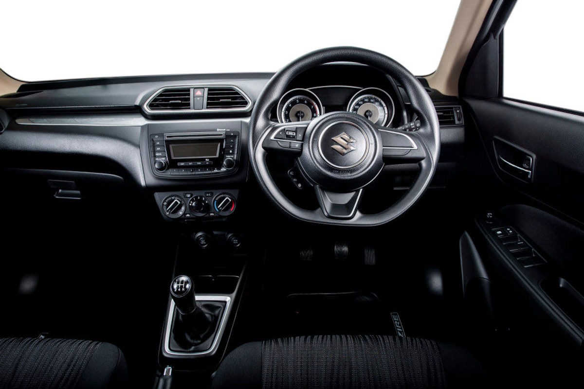 All Dzire sedans feature manual air conditioning, front and rear electric windows, 2 airbags (driver and front passenger), a tilt-adjustable steering column, a security alarm and immobiliser and rear ISOFIX child seat mounts.