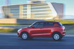 Our first impression is that the weight saving has contributed significantly to the handling and accelerative abilities of the new Swift. The steering is light and quick, yet offers just enough feel for reassurance. The clutch action is wonderfully light and gear changes require minimum effort. From behind the newcomer's steering wheel, you get the sensation you're piloting something agile, lively and – despite the engine's moderate outputs – effortless, which aids ease of use. With the light steering and compact size, the Swift is easy to park within the confines of a congested city.