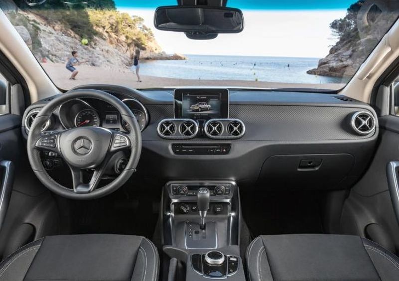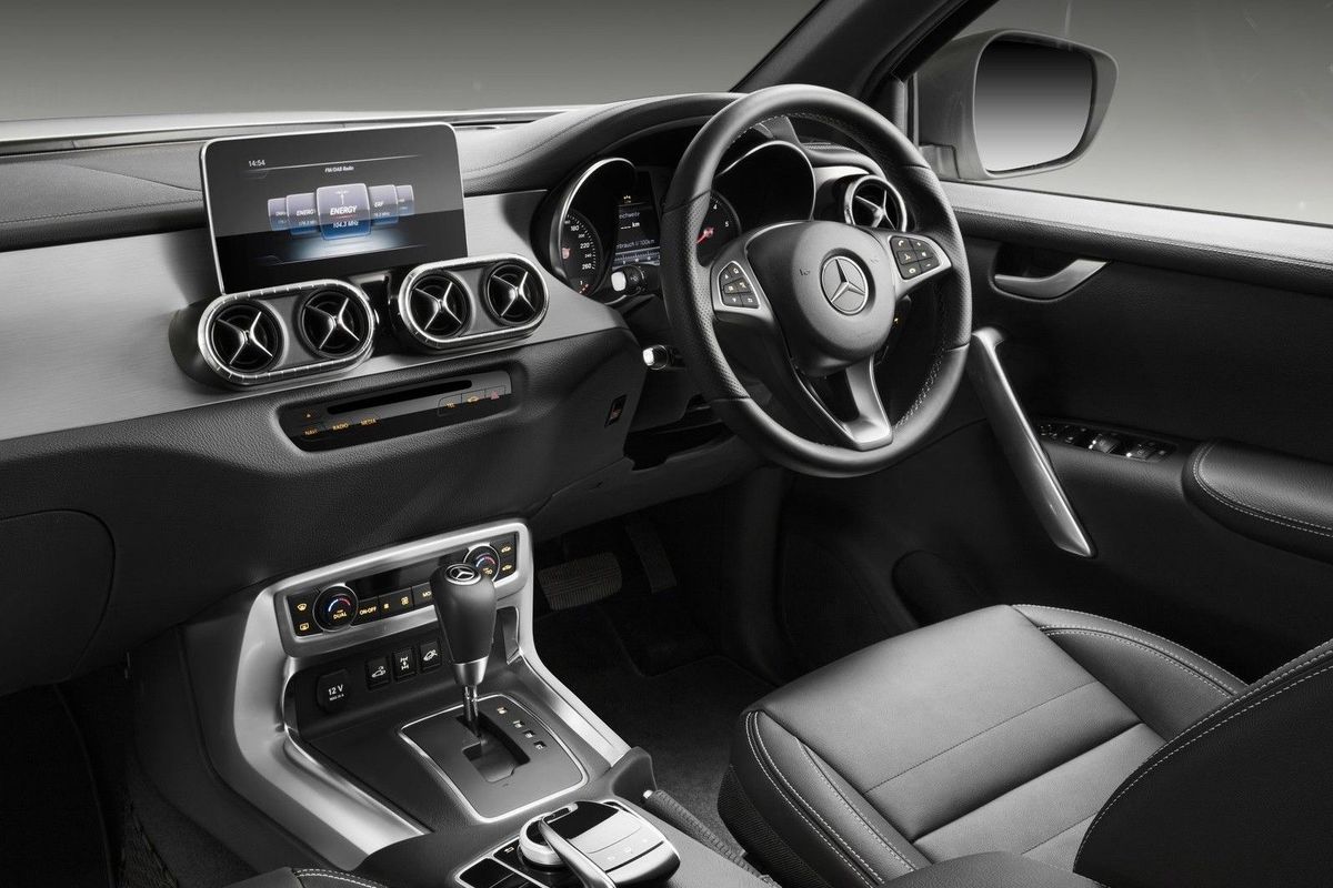 Towbars come standard at the rear, a bottom flanked by tall tail lamps and underscored by a chrome (also on Power models) rear bumper, and then – and this part is crucial, a Mercedes-Benz three-pointed star is placed dead centre beneath load bin’s handle. Out here at the back, traces of Navara are way less concealed than elsewhere, such as the cabin, where the Stuttgart firm has gone to great lengths to stamp its mark into everything from the Alcantara seats and 3-spoke steering wheel.