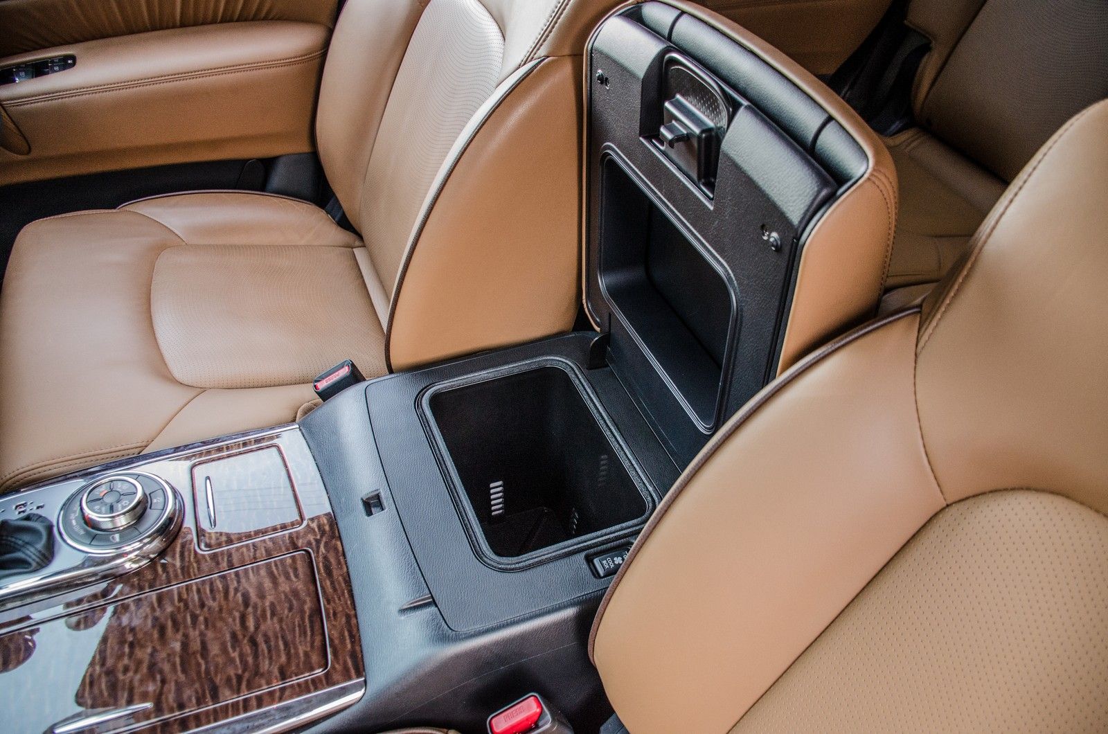 The refrigerated centre console is great for keeping drinks cold and having a total of 9(!) cup holders positioned throughout the cabin is certainly a boon. A pair of USB ports are provided up front and there is entertainment in the form of screens mounted in the headrests for rear passengers.