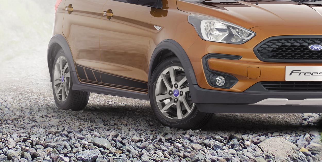 Although the Freestyle shares its platform with (and bears some resemblance to) the Figo, its design is differentiated by its headlights, wide striking grille and C-shaped foglamp surrounds. The Freestyle also gets some extra crossover treatment in the form of plastic cladding, as well as functional roof rails and a tailgate-mounted roof spoiler. The rear-end is further differentiated with a redesigned bumper and taillights. Furthermore, the Freestyle features an increased ride height with a ground clearance of 190 mm, which is some 16 mm higher than that of the Figo.