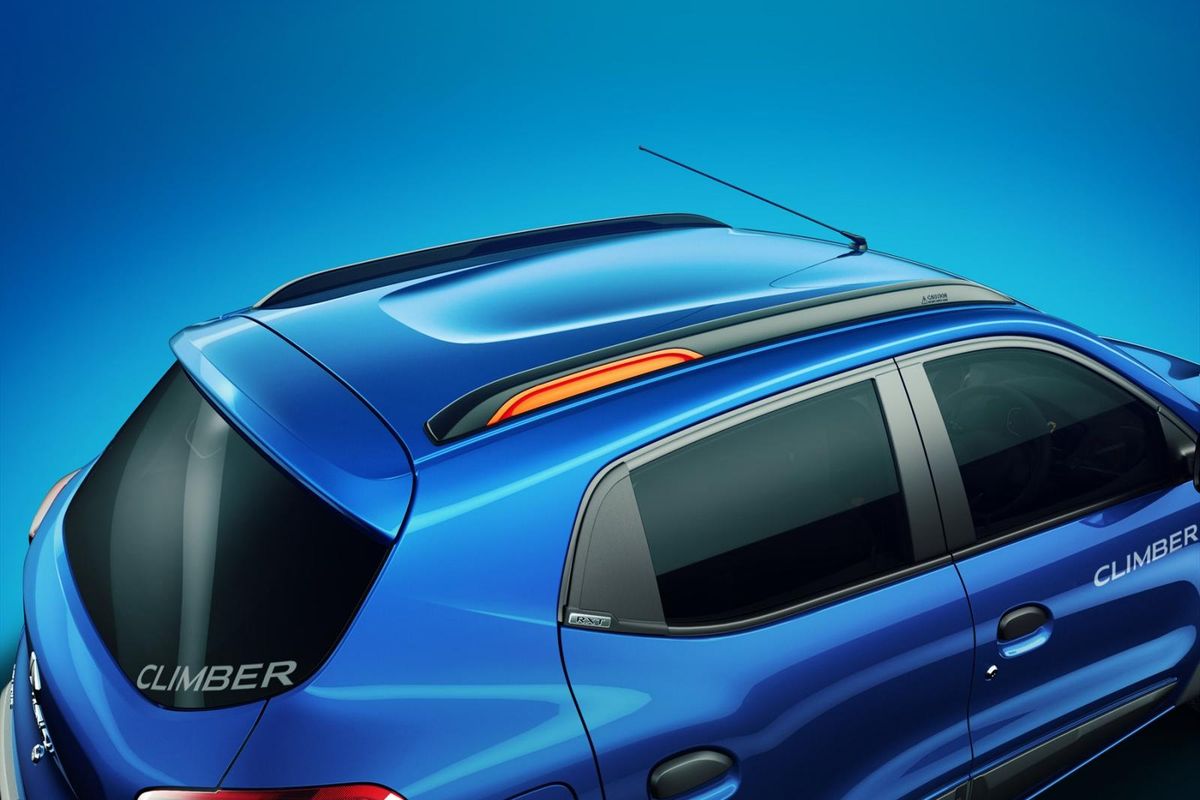 The Kwid Climber is offered in Electric Blue or Planet Grey and features a 2-tone exterior with exterior body cladding seen on the doors and wheel arches while bumper over-riders further add to the rugged appeal. The bumper protectors will help prevent scratches and scuffs. Roof rails with orange accents are also fitted along with muscular-style wheels to round off the look. ‘Climber’ insignia is also seen on the doors and rear windscreen.