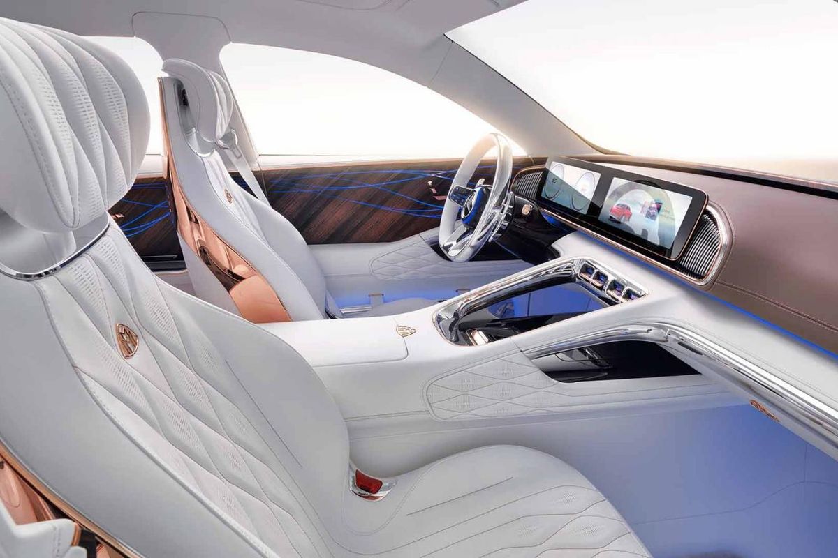 In true Maybach fashion, this concept is all about unique luxury and comfort, especially for rear passengers who are treated to fully adjustable diamond-stitched Nappa leather seats in Crystal White. Rose Gold and Pearl Grey coloured trim adds a tranquil contrast to the interior design.
