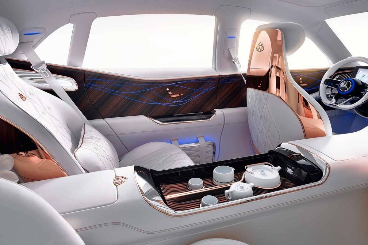 Rear passengers can also drink tea! Yes, there is a dedicated tea service back there with the tray made from “Magic Wood” ebony and housing a high-quality tea set. When you are done with your tea session, simply push a button and the tea service electronically retracts into the centre console under a sliding cover in high-gloss black.