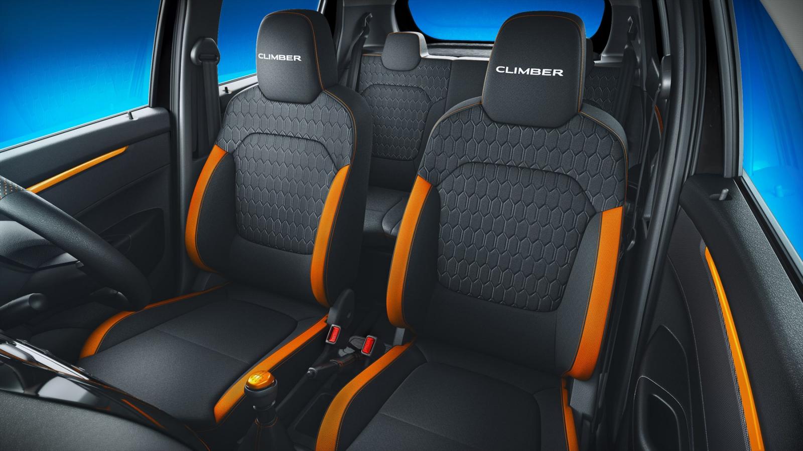 Rugged body cladding and orange detailing gives the Kwid Climber its unique look.