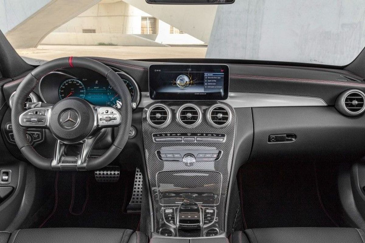 There are new materials in the facelifted Mercedes-AMG C43 cabin and enhanced digital infotainment screens.