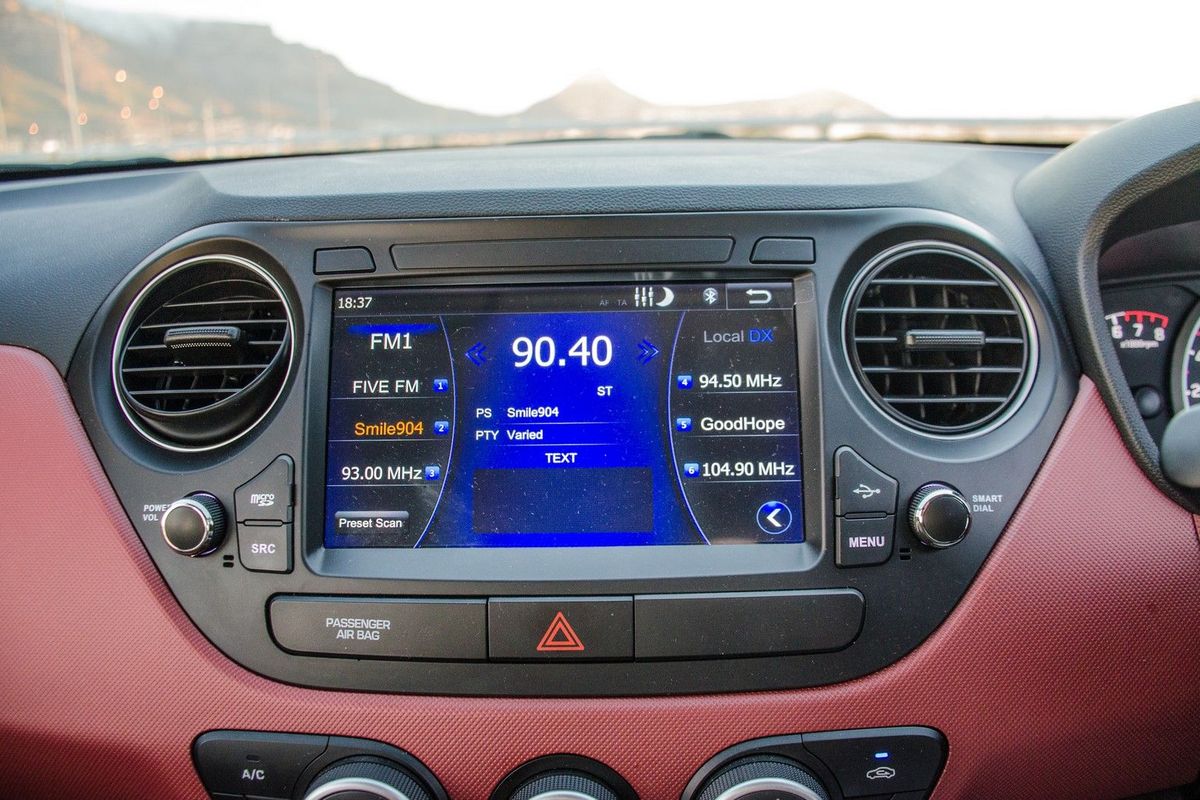 The 1.25 litre engine in this Grand i10 pushes out a competitive 64 kW, but is slightly down on torque compared with most rivals, offering only 120 Nm at a fairly high 4 000 rpm. In reality, however, it doesn't feel sluggish and keeps up with traffic very easily. Its light weight undoubtedly has a positive impact here. In terms of fuel economy, Hyundai claims a combined cycle figure of 5.9L/100km, which is very optimistic. We achieved a figure closer to 7.4L/100km, which is still in line with the competition's real-world figures.