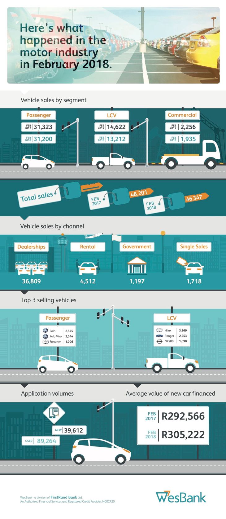 Aggregate new car sales of 46 347 units down by 3.8% (-1 854 units) compared to February 2017.