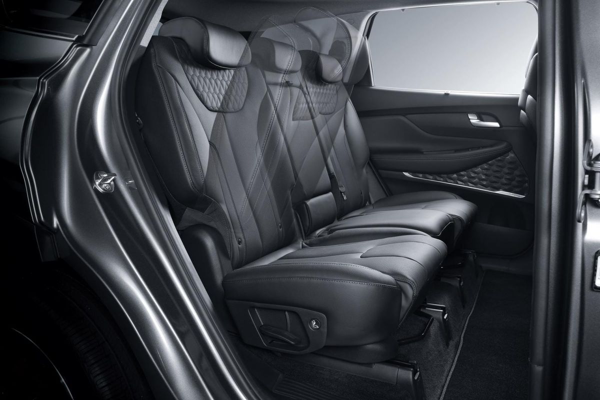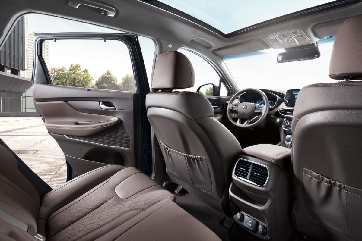 Newly shaped tail lights and chrome work with a silver diffuser, rear spoiler and angular rear windows are seen at the rear. Overall, we think the new Santa Fe's styling is a significant improvement over the outgoing model.