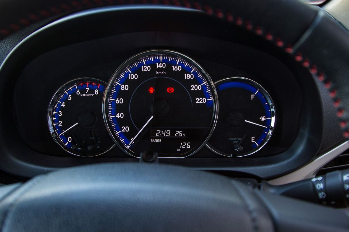 At freeway speeds the Japanese hatchback remains poised – even the gusty Cape Town wind didn’t have much of an effect on it. Some of its competitors can feel a bit floaty at higher speeds, but the Yaris remains planted and rides positively. The steering has a slight dead-spot around the centre, where nothing happens, which can lead to a few over-corrections when maintaining your lane.