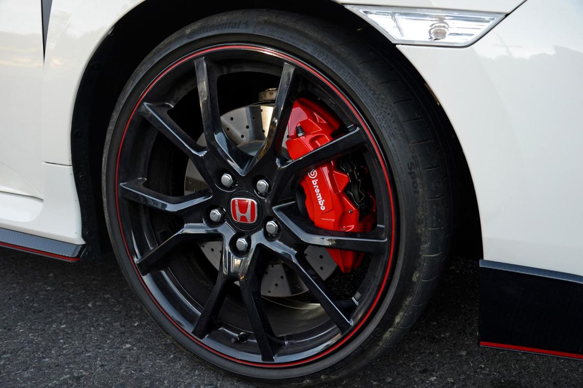 Looks aside, a lot has changed under the sheet metal. The new body is stiffer and overall weight has been reduced, and the new car is longer and lower than the outgoing model. There's a big focus on aerodynamics and the wings all serve a purpose, some of them facilitate cooling, while others aid road-holding. Furthermore, there's a trick suspension setup with an all-new adaptive damping system. With the new Comfort mode, you can, in actual fact, live with the car on a daily basis and not have your spine realigned each time you drove over an uneven patch of tarmac. The new car also features a new power-steering setup, which is calibrated to each of the three driving modes (comfort, sport, Race). The new Honda Civic Type R rides on 20-inch alloys wrapped in 245/30 R rubber.